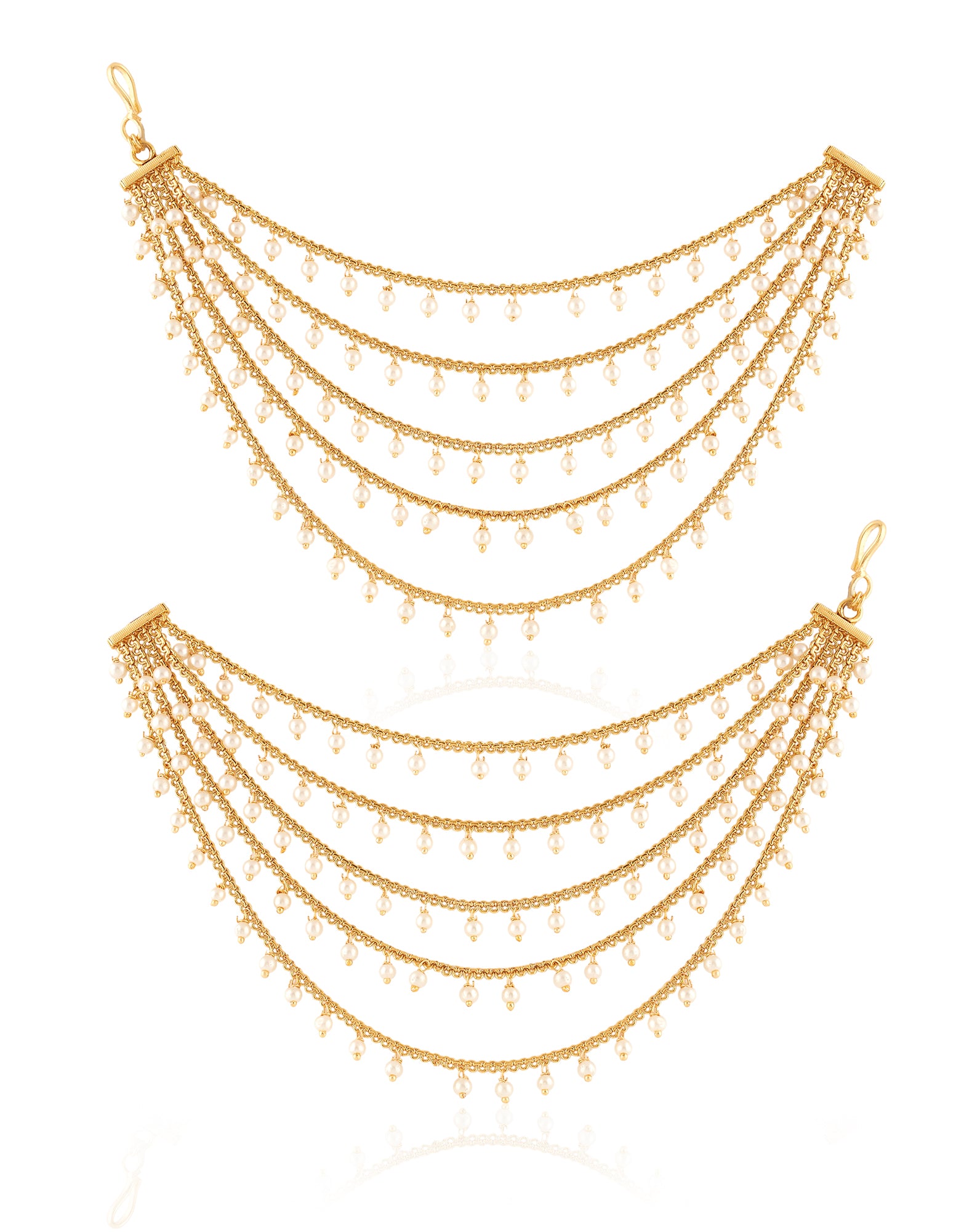 Indian hair accessories for women are different from hair accessories everywhere else. When you hear these words, you might think of hair clips or rubber bands. But our hair accessories for women are something else. We're talking maangtikkas and matha pattis. Maangtikkas are these dangling pieces of jewellery worn in the middle of your hair parting. These are usually worn during festive occasions and weddings. Our collection of maangtikkas features beautiful pearls, vibrant colour stones and intricate filigree work. We've introduced them in different sizes to suit every face shape. Smaller maangtikkas complement dainty face shapes like oval or heart. Bigger designs suit fuller face shapes like round or square. Either way, our selection of hair accessories for women is replete with options.