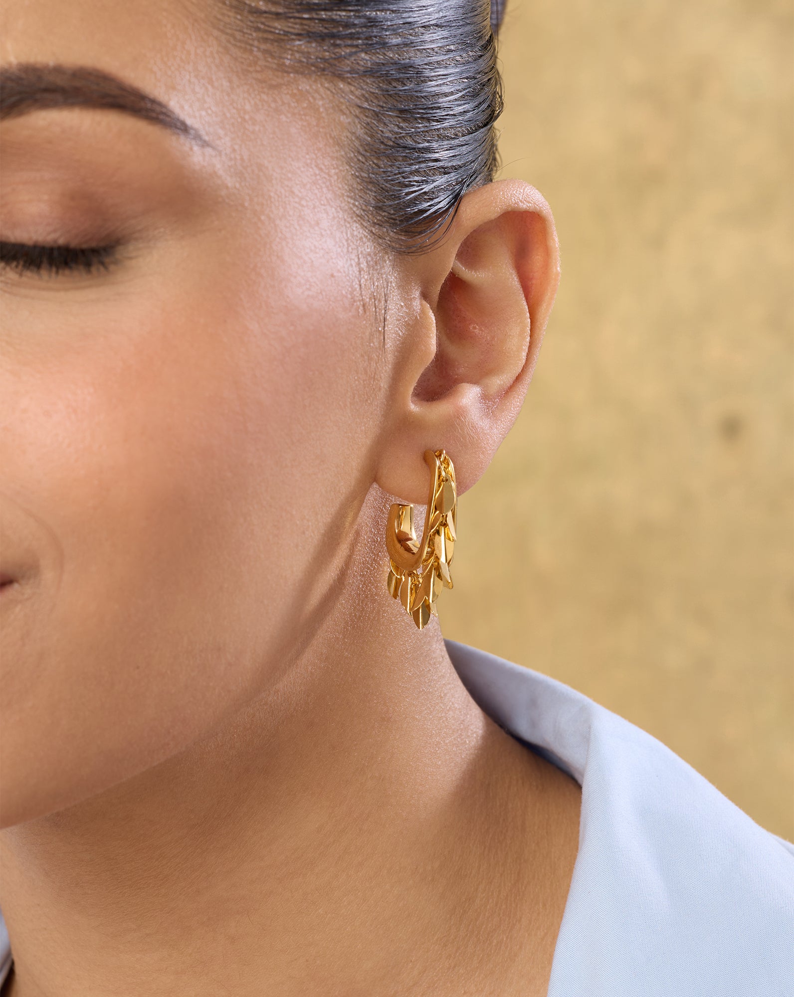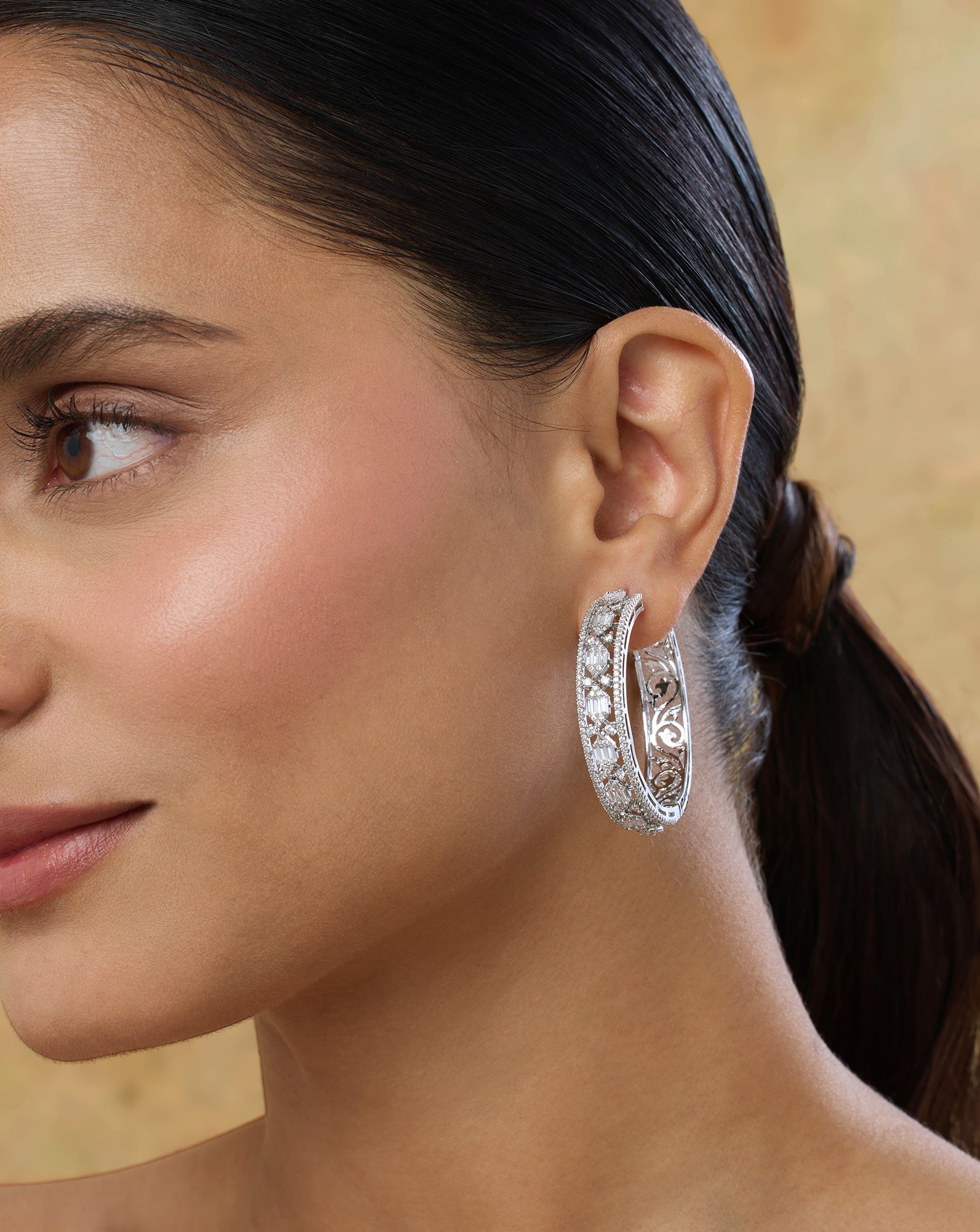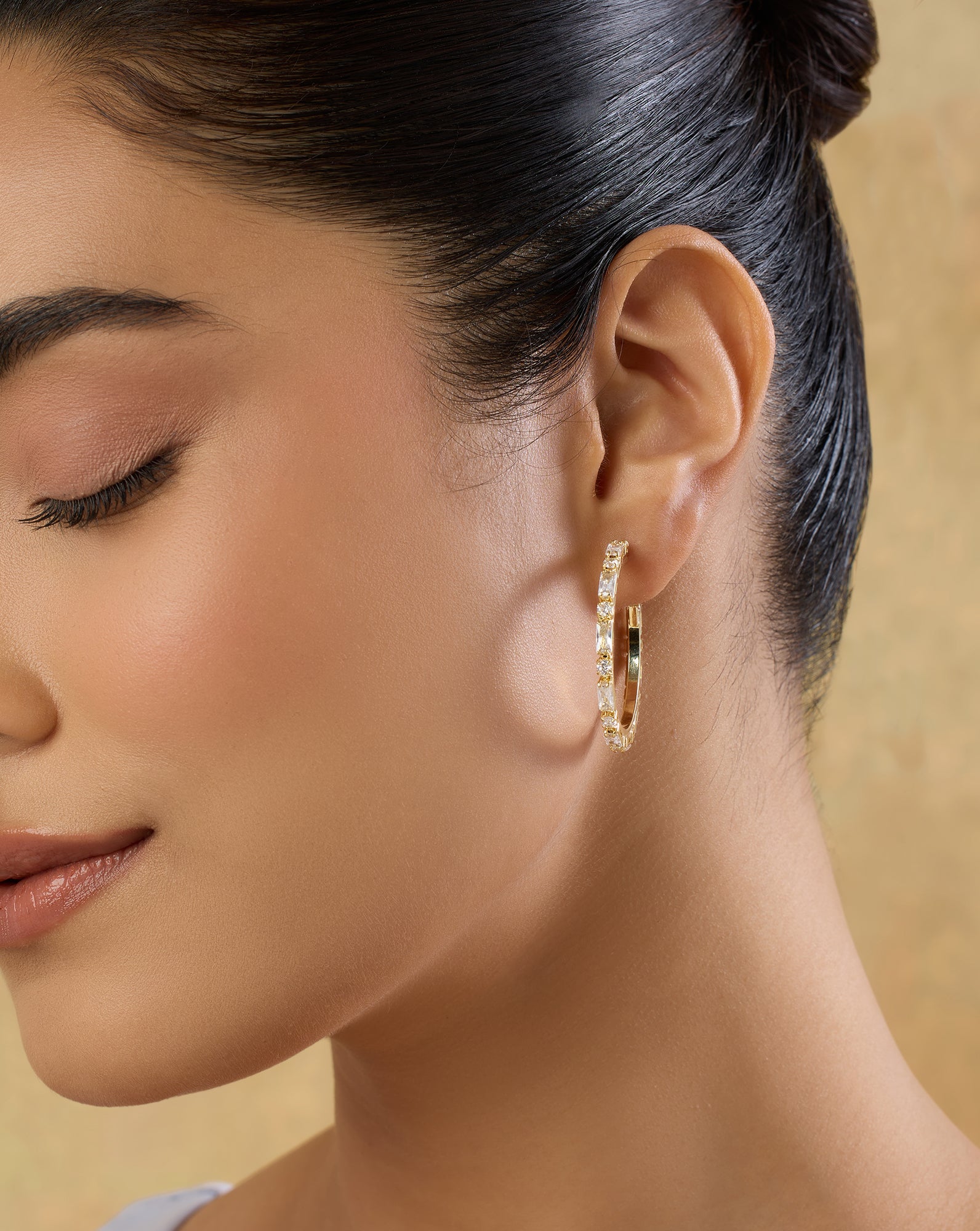 Choose the Right Hairstyle: Hairstyles like a neat bun, side braid, or sleek ponytail are the best bets when it comes to Indian hoop earrings, as they’ll keep your hair away from tangling.