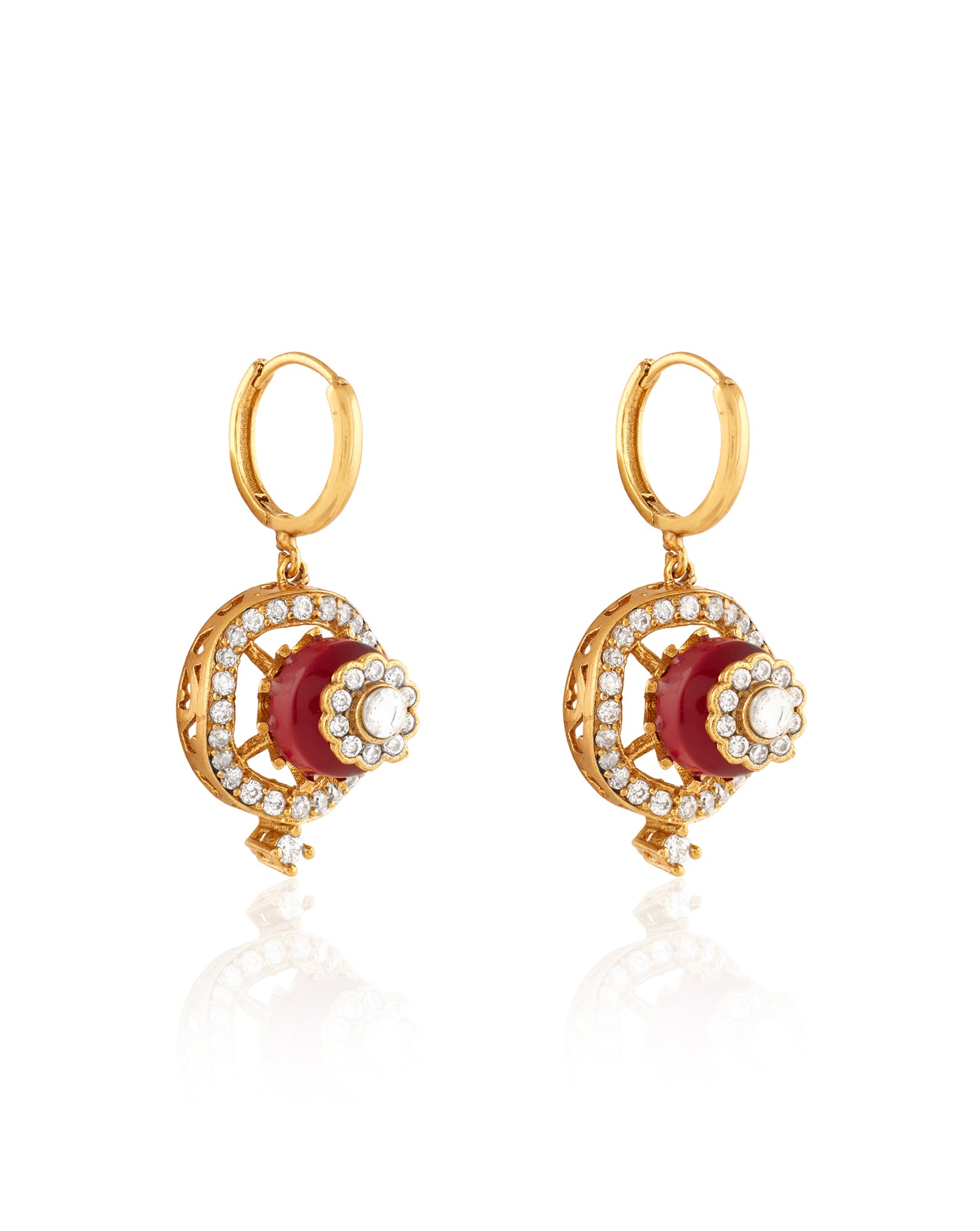 Traditional Hoops: Also known as Indian hoop earrings or ethnic hoop earrings, these are beautifully embellished styles with intricate crafts like Kundan, polki, Jadau, and temple work – all of which are available on Indinoor.