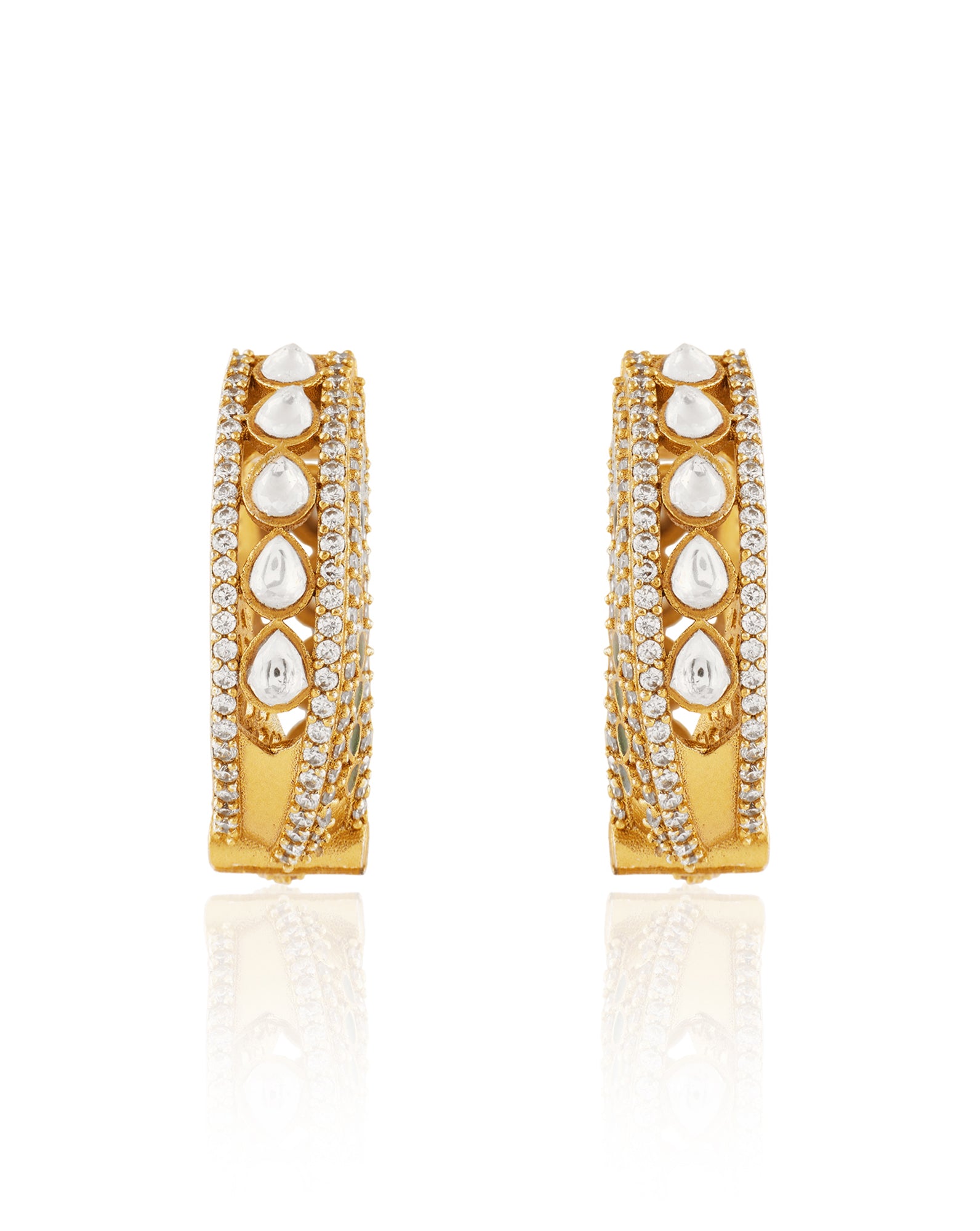 Polki Hoop Earrings: Hoop styles with uncut diamonds expertly embedded in soft metals to create intricate patterns. These hoops are perfect for festive occasions.
