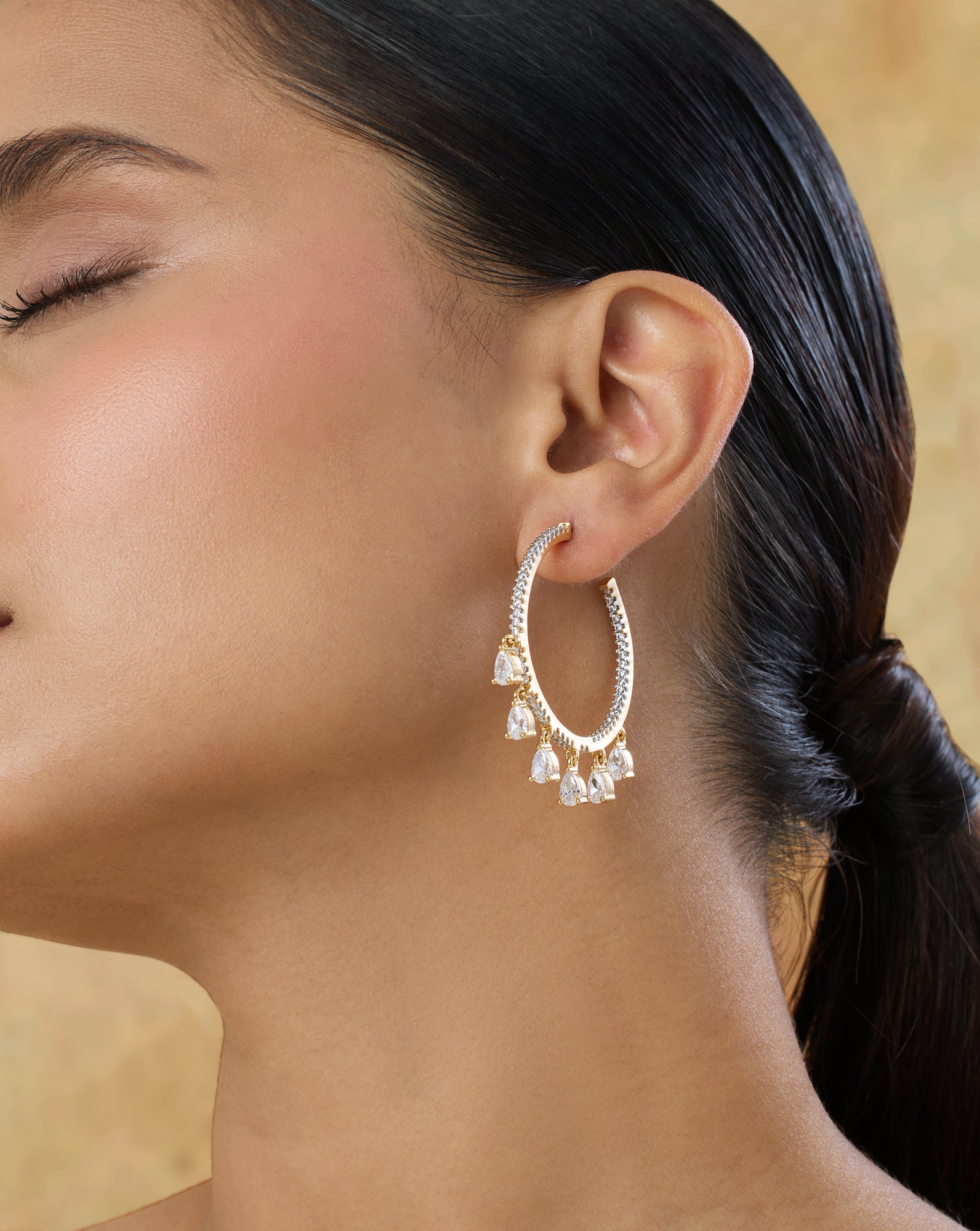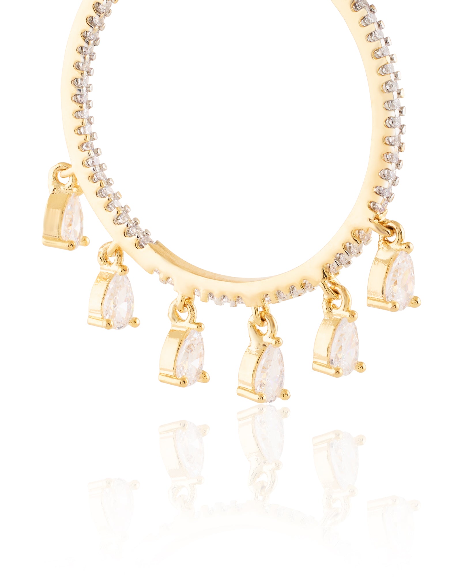 Zircon Hoops: Zircon hoops are circular earrings studded with beautiful crystal zirconia stones. They can elevate everything from lehengas to cocktail gowns and more.