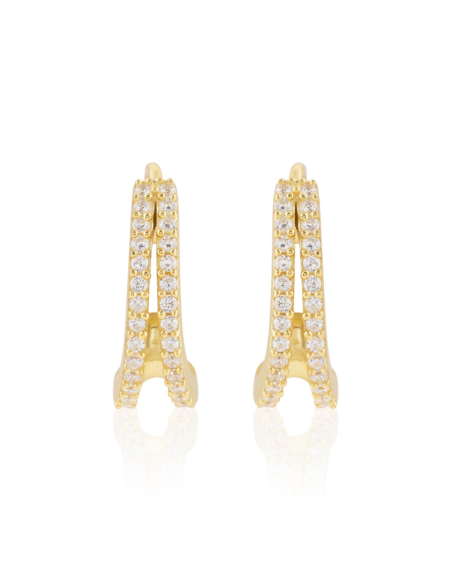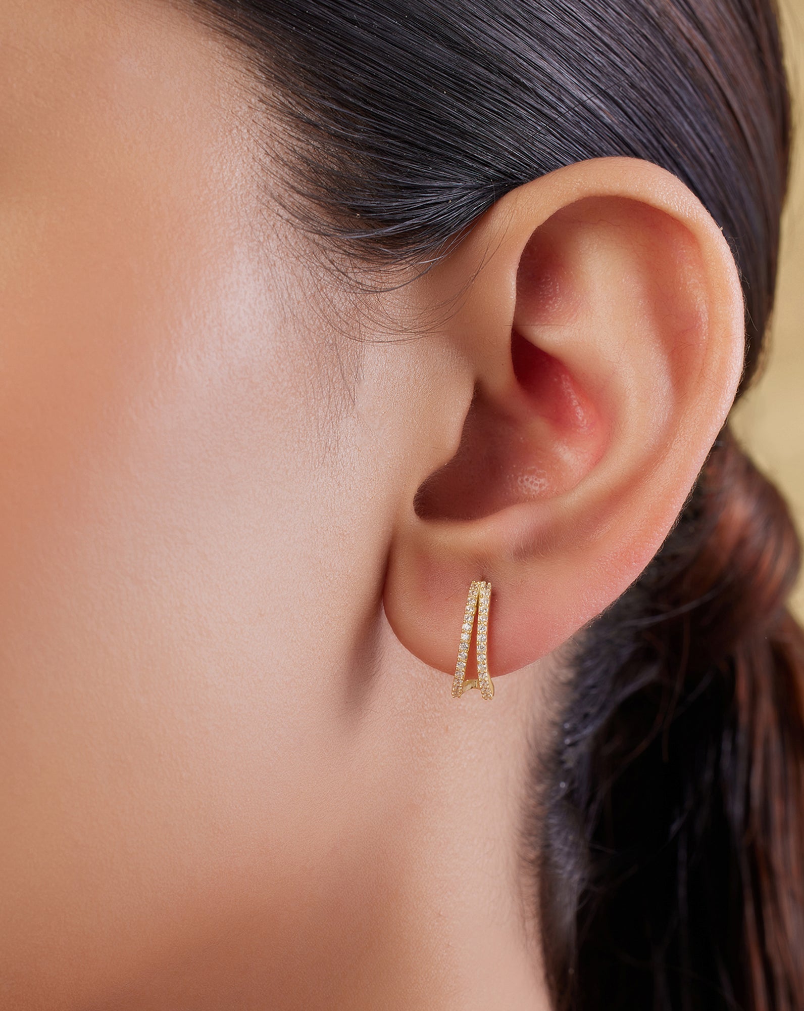 Layered Hoops: These styles feature multiple hoops in one earring. They’re meant to give off the illusion of double or triple piercings, so if that’s the look you’re aiming for, layered hoops are your best bet.