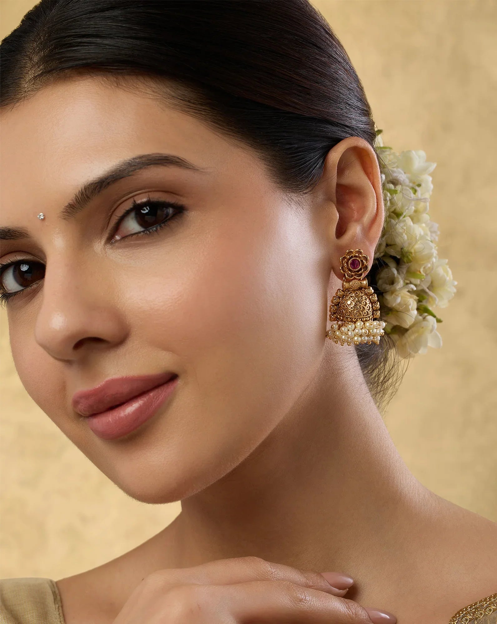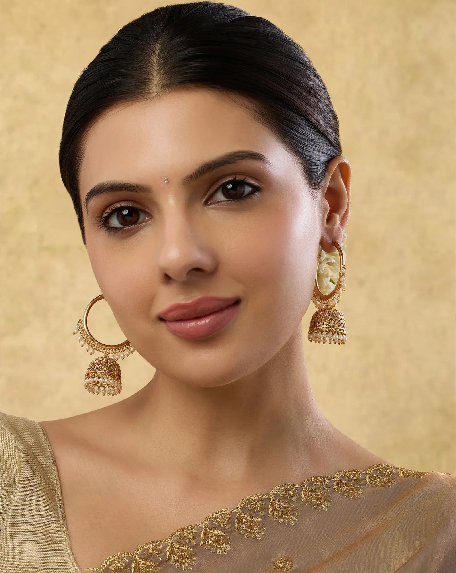 Meirna Temple Hoop Jhumka Earrings
