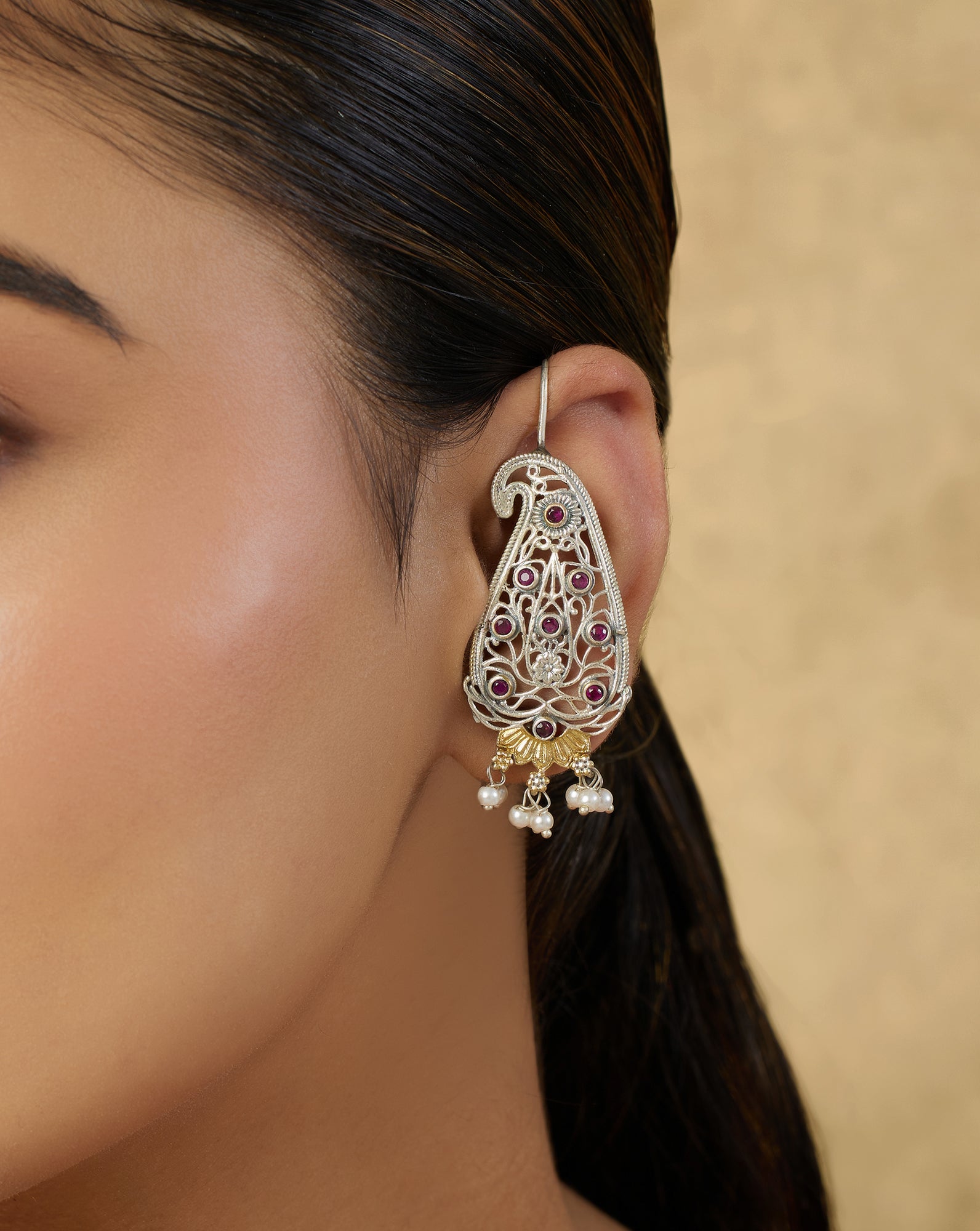 Mayira Oxidised Silver Ear Cuff